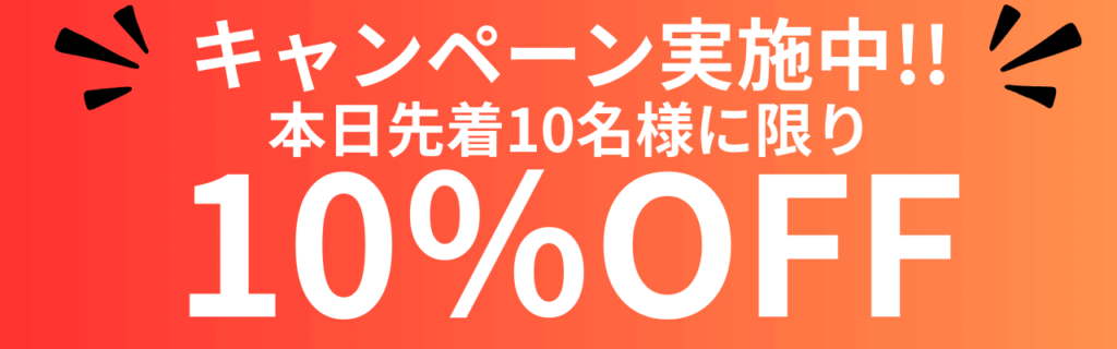 本日限定 ! 本日20:59まで先着10名様に限り10%OFF