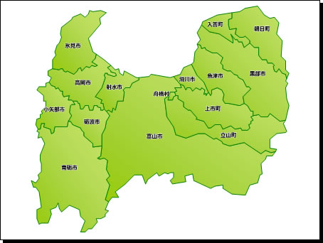 富山市|高岡市|魚津市|氷見市|滑川市|黒部市|砺波市|小矢部市|南砺市|射水市|舟橋村|上市町|立山町|入善町|朝日町